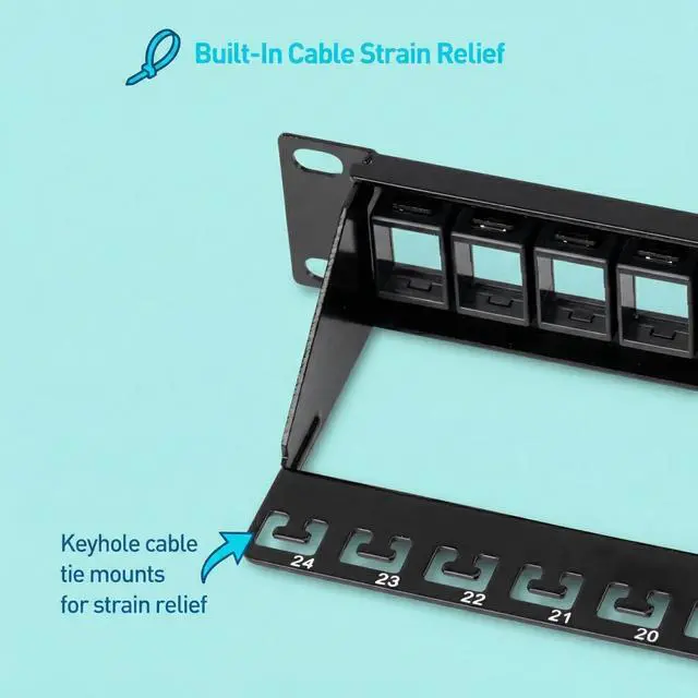 Unlike pre-loaded fixed panels, this blank patch panel puts you in complete control. The 24 unloaded slots accept standard-sized keystone inserts, allowing you to create a truly custom interface. Whether you need to run high-speed 10G Ethernet alongside 4K HDMI video feeds, fiber optic connections, and analog audio lines, this panel brings them all together in a single, manageable location.