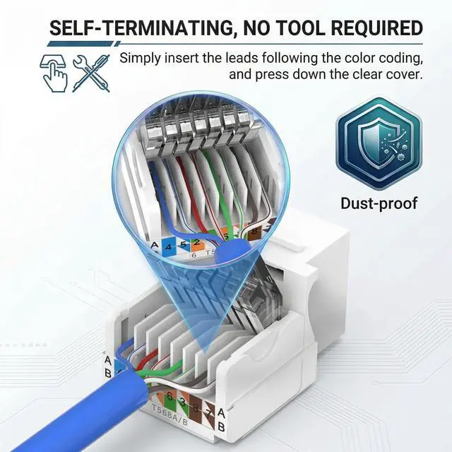 Tired of using cumbersome punch-down tools for your network installations? The Cat6 Toolless RJ45 Keystone Jack is engineered for both IT professionals and home network DIYers looking for a fast, reliable, and tool-free termination solution.