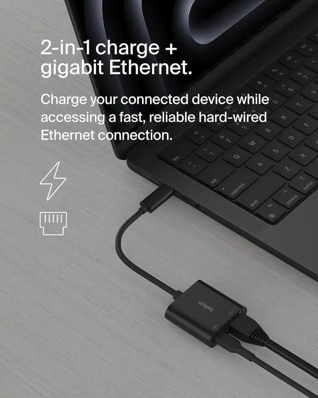 CHARGE: This 2-in-1 adapter allows you to gain a useful ethernet port without compromising your USB-C port. Connect your computer via ethernet cable while charging a USB-C compatible device simultaneously.