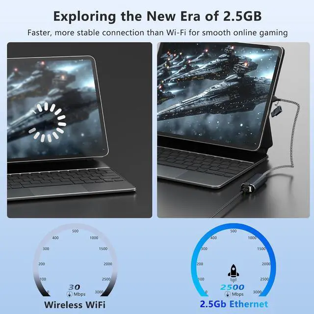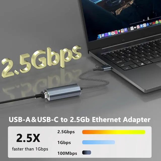 Note: To achieve 2.5G bps speeds ensure that your Ethernet device and Ethernet cable both support 2.5G bps. Dual Connectors USB-AUSB-CThe USB Ethernet adapter features both USB-A and USB-C connectors allowing you to switch between interfaces at any time. With one USB/USB-C to Ethernet adapter you can connect virtually all your devicesincluding laptops tablets desktops and smartphones. Perfect for office use travel gaming and large file transfers. If you have devices with both Type-A and Type-C connectors this set is the perfect choice for convenience.