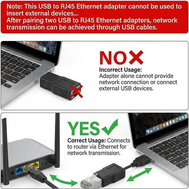 Equipment: Not suitable for USB 1.1 (printer style USB) It cannot allow you to connect the network directly from the router to the laptop! Not suitable for electronic musical instrumentsWide