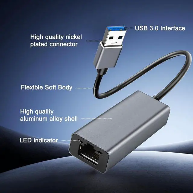 Play: Laptops with Ethernet adapters are plug and play Windows 11/10/ 8.1 /8 macOS and Chrome OS. It also doesn't require a driver and is compatible with Nintendo Switch and Switch Oled. Just plug it in and enjoy a smooth wired networkGigabit speed: The USB-A Gigabit Ethernet adapter provides full 1000 Mbps wired speed for any device with a USB-A port. Suitable for gaming 4K streaming or home office Settings this compact adapter ensures lag-free browsing no disconnection and seamless connectionWide compatibility The usb Ethernet adapter can serve as a powerful communication bridge between usb a devices and Ethernet networks and is compatible with most desktop computers laptops Nintendo Switches Switch OLeds and TV boxes with usb a ports such as ThinkPad. Surface XPS Chromebook Spectre Zenbook Macbook Air/Pro Mac Mini etcCompact and portable: This Ethernet to usb model features a brand-new small-sized design. You can easily put it in your briefcase or pocket. It is very suitable for business people