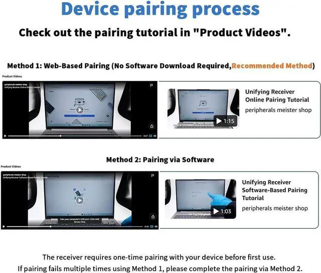 2. Pairing via Options+ software. Please check the product videos for detailed step-by-step instructions. (The receiver requires initial pairing before first use.