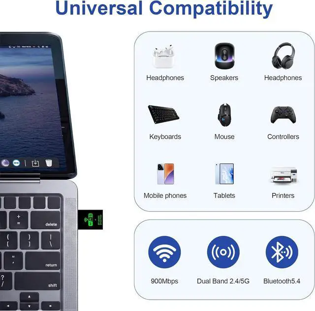 High-speed: WiFi adapter features the WiFi 6 standard with AX900 ultra-fast speed satisfying your needs for smooth online gaming downloading and high-definition video streaming for a seamless and immersive experience.