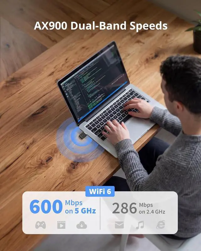 Linux: Upgrade your Linux laptop or desktop PC with this AX900 USB WiFi 6 adapter. Features 1024-QAM MU-MIMO and BSS Color for faster more stable wireless performanceWorks with