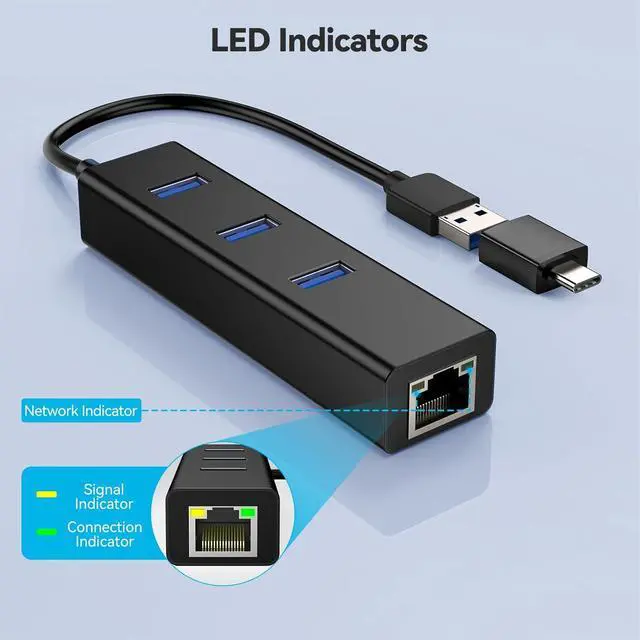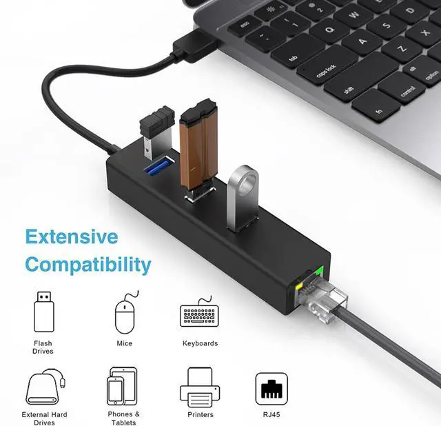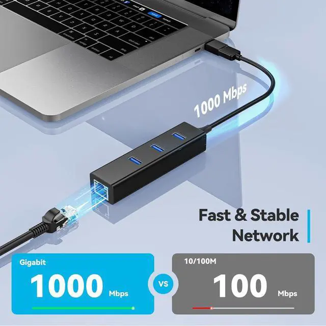 Gigabit Ethernet: Expand a single USB-C or USB-A port into a complete connectivity station. Enjoy a stable 1000 Mbps Gigabit Ethernet connection (backward compatible with 100/10 Mbps) alongside three USB 3.0 ports delivering 5 Gbps transfer speeds10x faster than USB 2.0 and fully backward compatible.