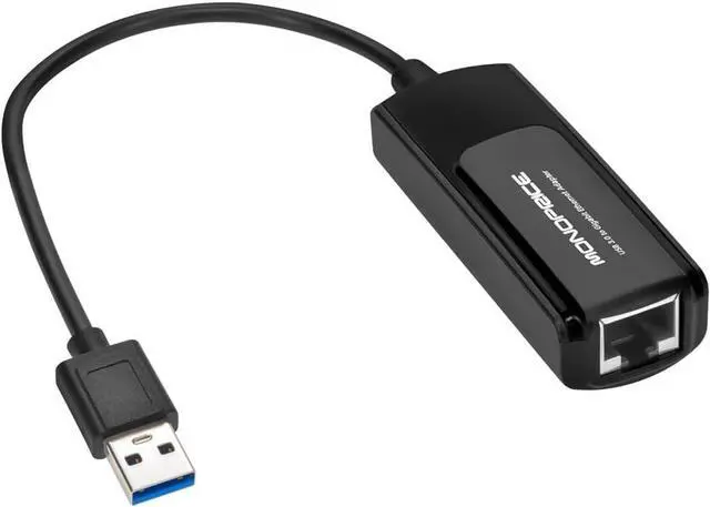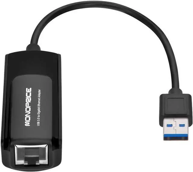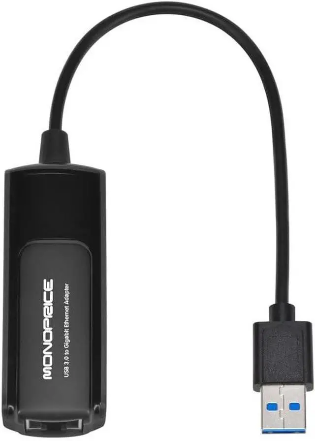 Monoprice USB 3.0 to Gigabit Ethernet Adapter Supports 10/100/1000 Mbps Connections Plug-N-Play Compatible with Windows MacOS Linux and Android Systems