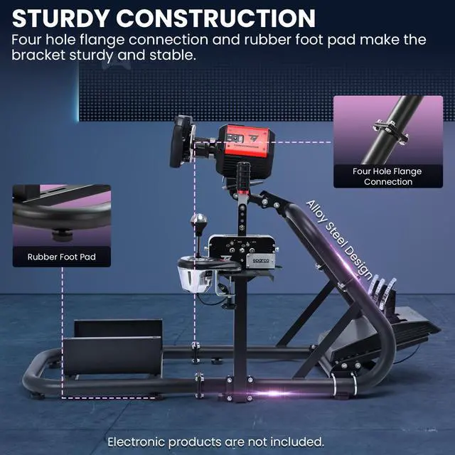 Sturdy Flange StructureG29 racing wheel is designed with 50*50mm large round tube, four-hole flange structure connection, stable and sturdy, and equipped with non-slip feet to enhance shock absorption