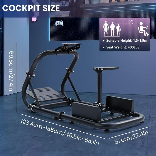 Wide AdaptabilityRacing simulator cockpit compatible with red and black seats in the store to form a complete cockpit, also compatible with 90% of the seats on the market, supports direct drive steering wheels and TV bracket mounting, DIY drilling is available