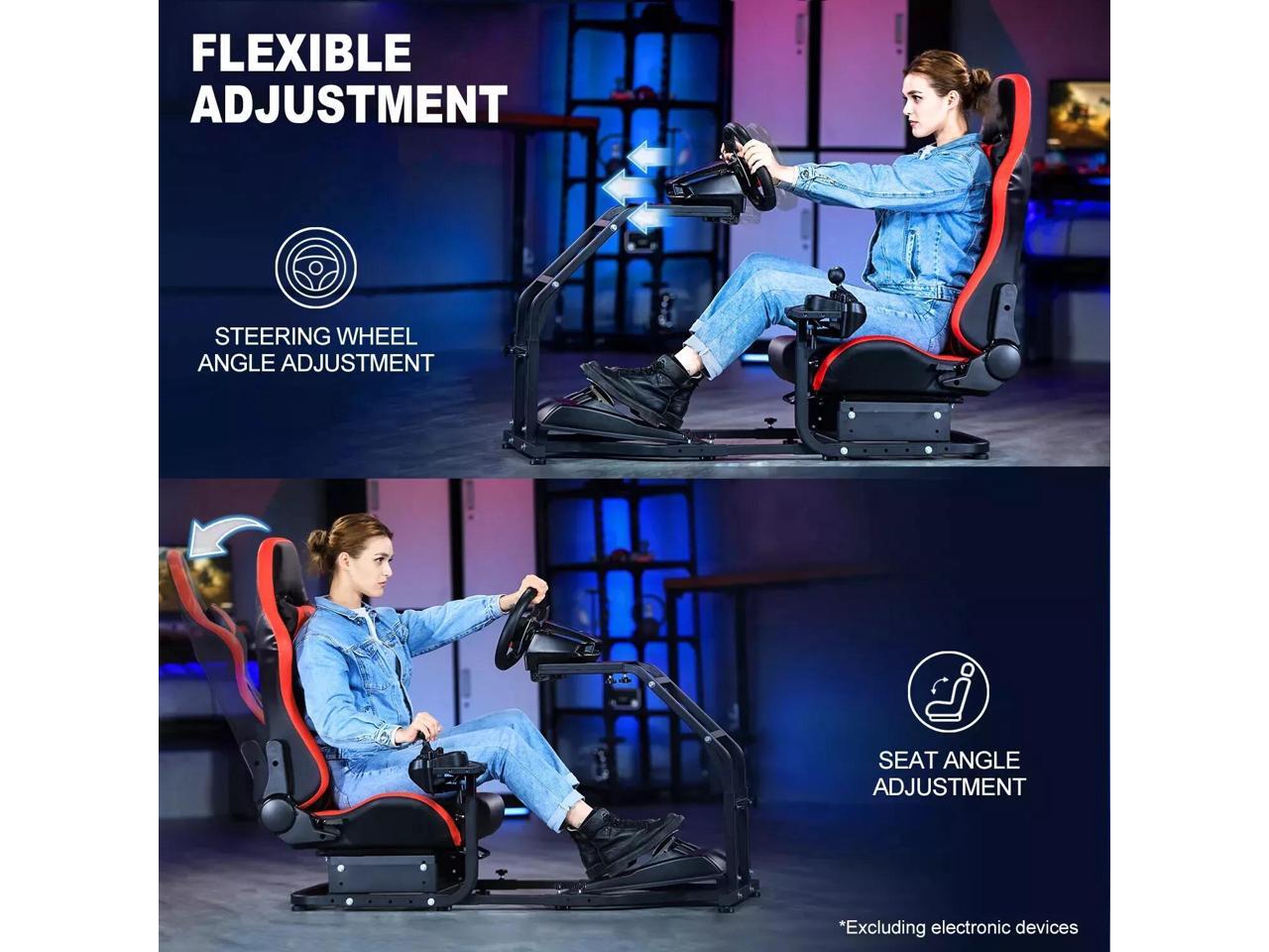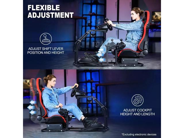 Adjustability: The stand is freely adjustable, the overall height and length can be adjusted, the steering wheel can be angled freely, the gear lever can be adjusted up and down and can be swapped left and right, so you can adjust it to each other according to your habits and preferences. The height of the seat bracket can also be adjusted.