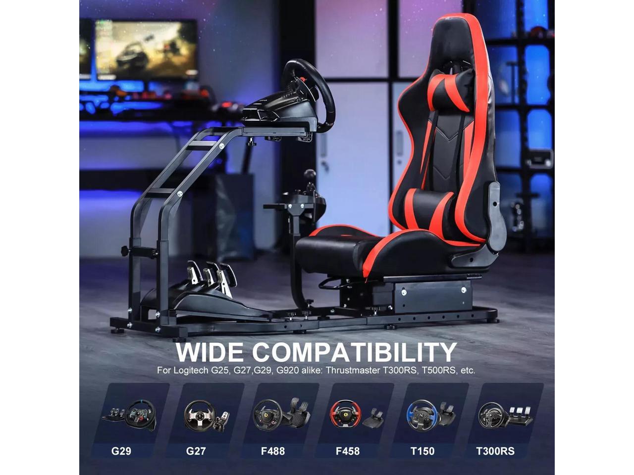 Minneer Gaming Simulator Cockpit With Red Seat Adjustable Fits for Logitech G25 G27 G29 G920 G923 Thrustmaster T300 Fanatec Racing Steering Wheel Stand,Not Included Steering wheel, pedal and handbrake