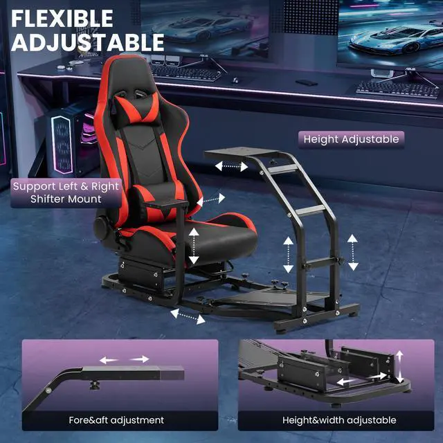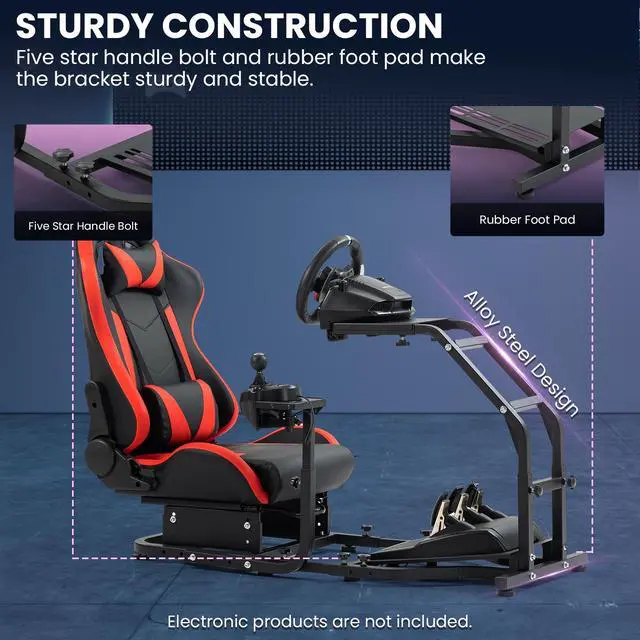 With a reinforced carbon steel tube construction, adjustable pedals, wheel mounting and additional pedal mounting, this racing simulator kit provides a dynamic game racing capability and an ultimate comfortable seat experience to play the game. If you are a veteran racer, this professional facility will open up a whole new world of racing for you, taking your skills and experience to the next level. Equipped with special racing seats to simulate car seats, you can start to enjoy the game after assembling. Steering wheel and foot brake are not included.