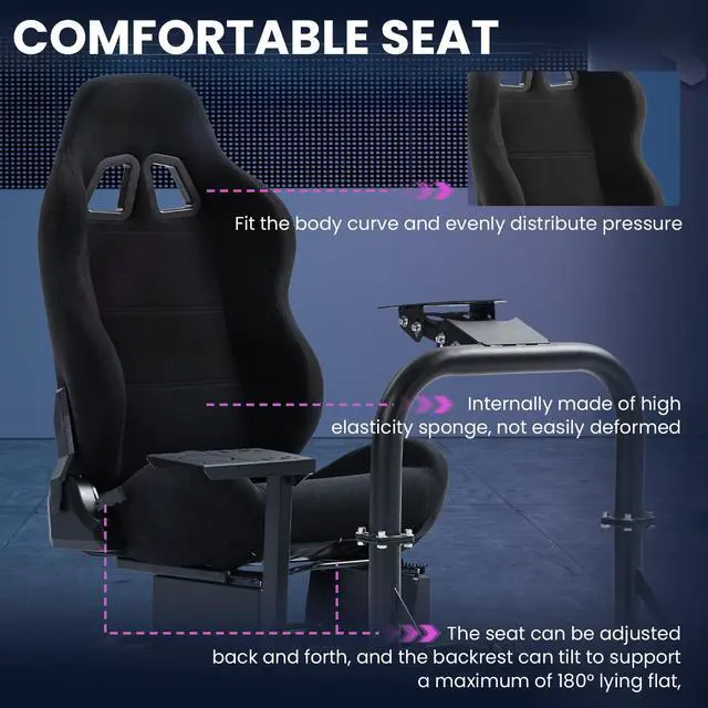 High quality materialThe racing game simulator stand is made of high-strength alloy steel structure; hand-made double-layer black anti-rust spray paint; adjustable highly flexible round rubber feet.