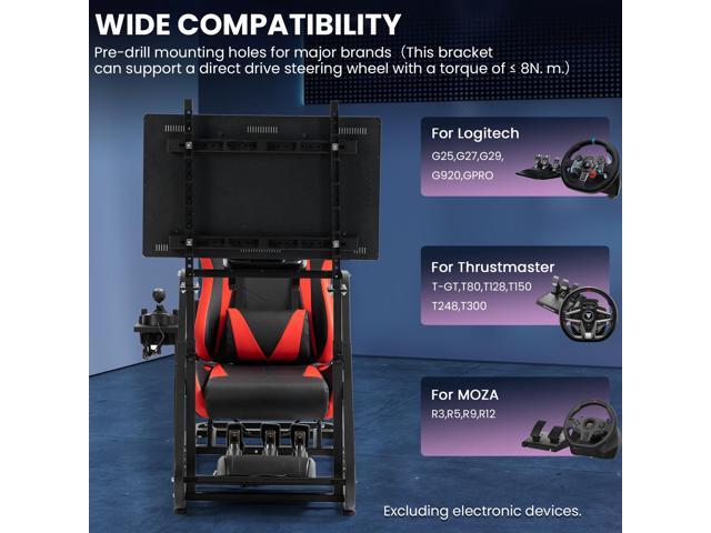 - Compatible models The racing simulator with display bracket in the cockpit is suitable for most brands of steering wheel, pedal, and transmission in the market, such as Logitech, Fanatec, Thrustmaster, and.