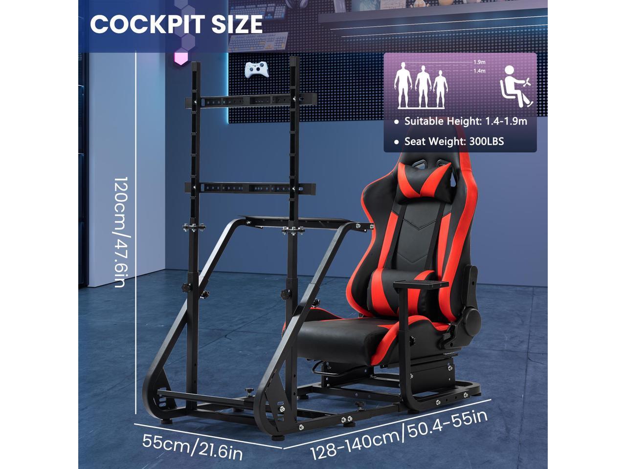 Minneer Racing Simulator Cockpit Stand with Monitor Mount Racing Wheel Stand with Red Seat fit Logitech G25 G27 G29 G920 Thrustmaster,NO Steering Wheel Shift Lever Pedal Display