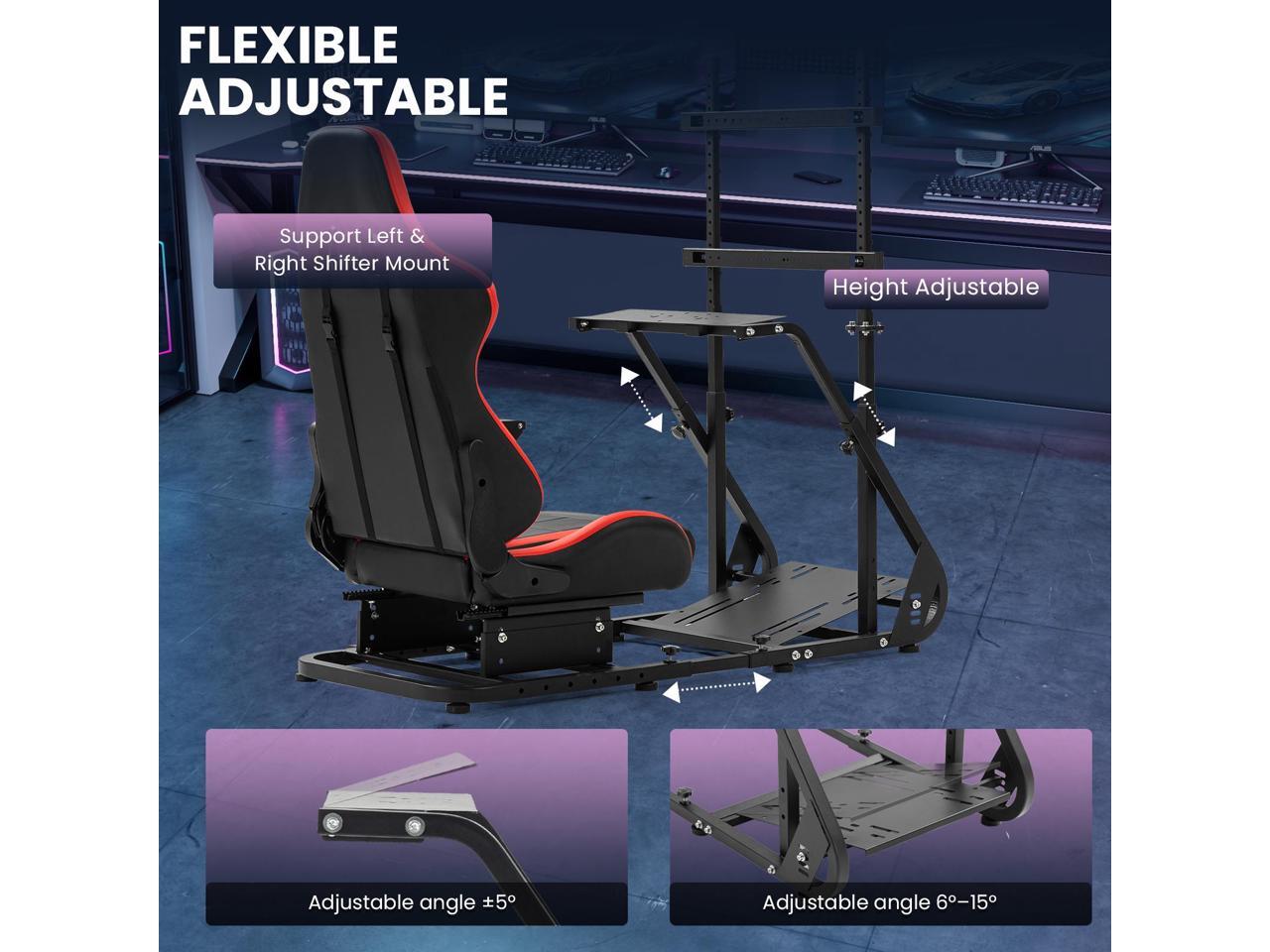 - Free adjustment The height, length, pedal position, and shift lever position of the racing simulator frame can be freely adjusted.