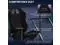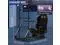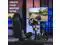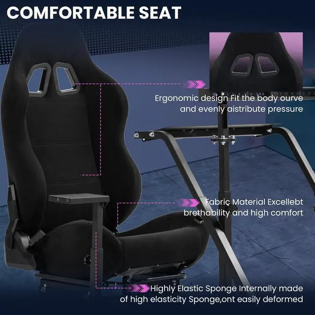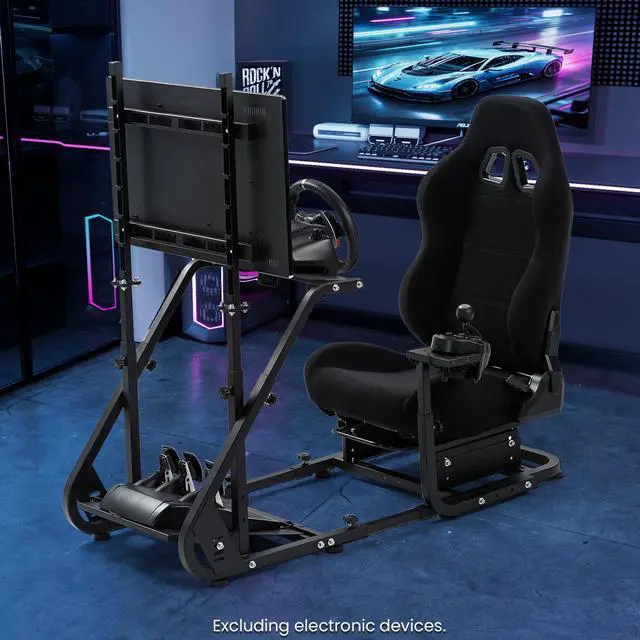 Racing game cockpit simulator stand with black chair does not include shifter, steering wheel, monitor, pedals.