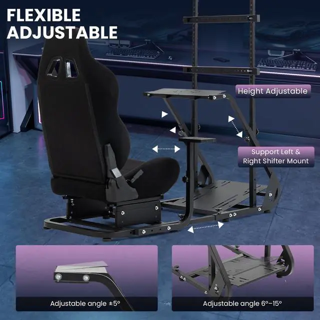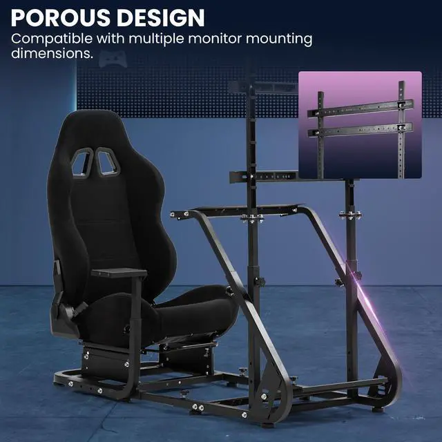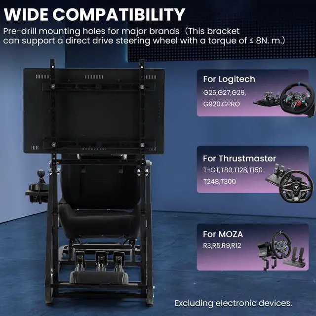 Compatible models The racing simulator with display bracket in the cockpit is suitable for most brands of steering wheel, pedal, and transmission in the market, such as Logitech, Fanatec, Thrustmaster, and.