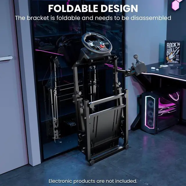 Stability UpgradeTwo reinforcement rods are added to this racing stand for fixing, the stability is greatly increased. It can also be quickly folded in 10 seconds by removing the reinforcing rods
