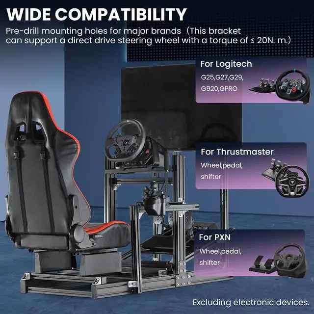 Stand Adjustable: Both the stand itself and accessories such as the steering wheel, pedals and seat are adjustable. It fully satisfies the demands of all professional.