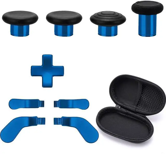 5. Complete Set: 4 thumbsticks (2 Classic, 1 Tall, 1 Dome), 4 paddles (2 Medium, 2 Mini), 1 D-pad, storage case included