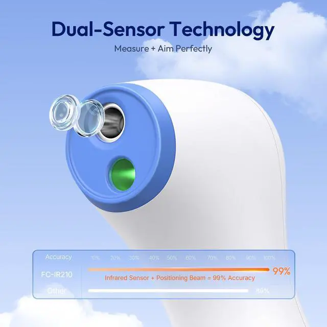 Engineered with medical-grade infrared technology, the FC-IR210 delivers 1-second forehead or object temperature readings with ±0.2°C accuracy. Its color-ring intelligence system transforms numbers into instant health insights green for normal, orange for caution, red for action.