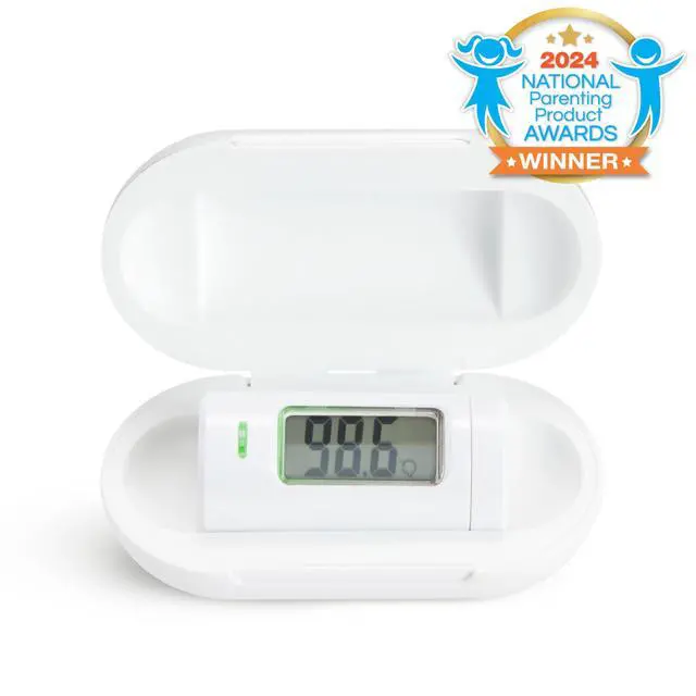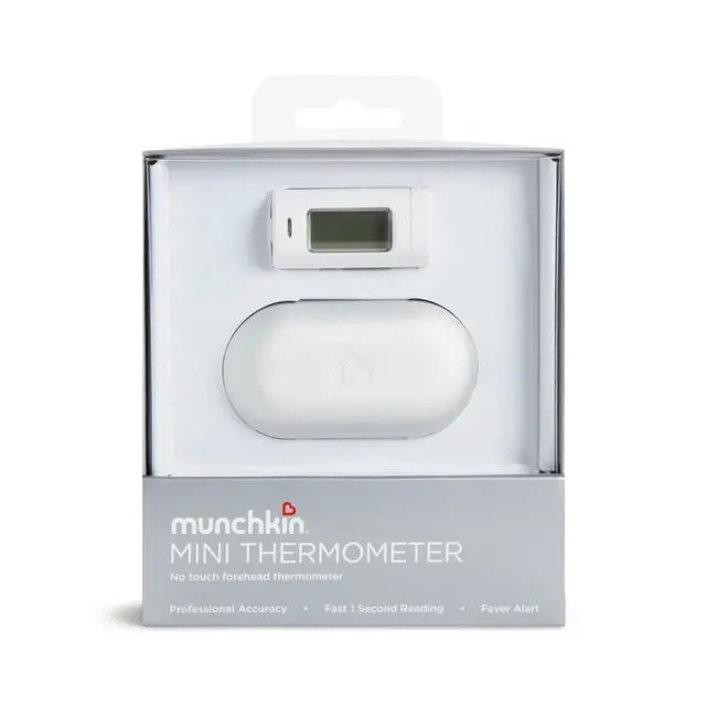 Munchkin Mini Thermometer uses no-touch infrared technology for accurate results.