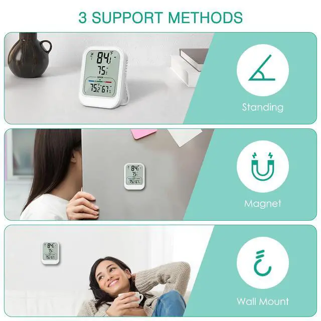 - Multiple Placement Options: The main uint can be magnetically adsorbed, wall-mounted, and upright. The sensor can be upright, wall-mounted, and suspended. A variety of installation methods can meet your needs in different scenarios, such as living room, kitchen, greenhouse, guitar room, office and cellar.