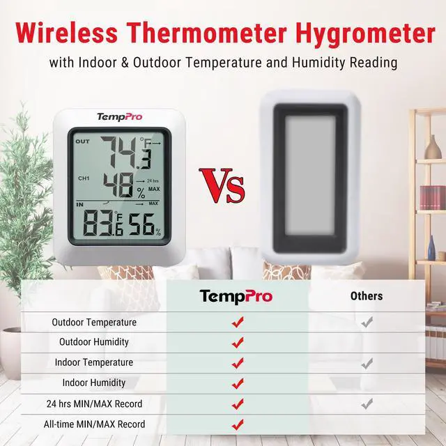 Outdoor digital thermometer displays all-time/24-hour high & low data history for humidity and temperature as well as trend indicators. Always stay informed about any change to the surroundings around your sensors.