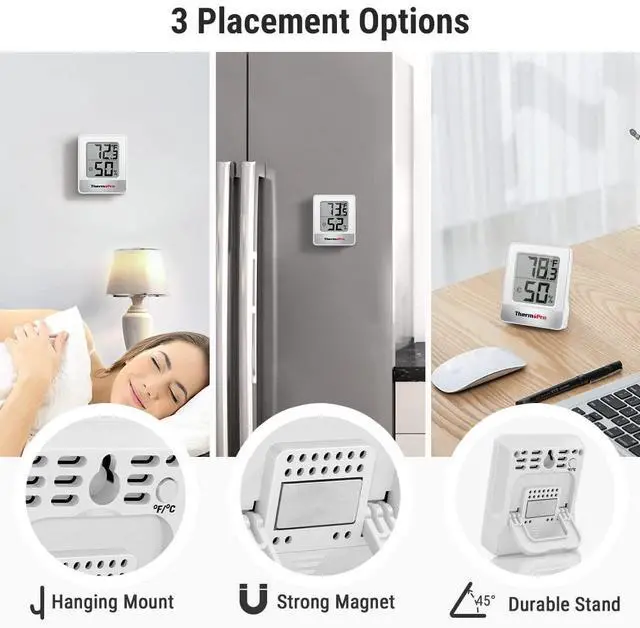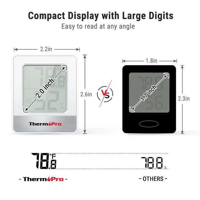 Features a compact LCD display with large bold digits, allowing you to clearly read the thermometer hygrometer from any angle and distance.