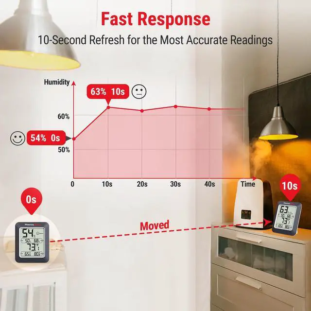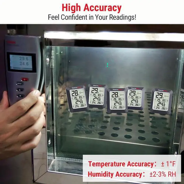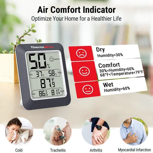 The TP50 digital hygrometer is easily portable. It features a stand for tabletop use and a magnet for attaching to metallic appliances!