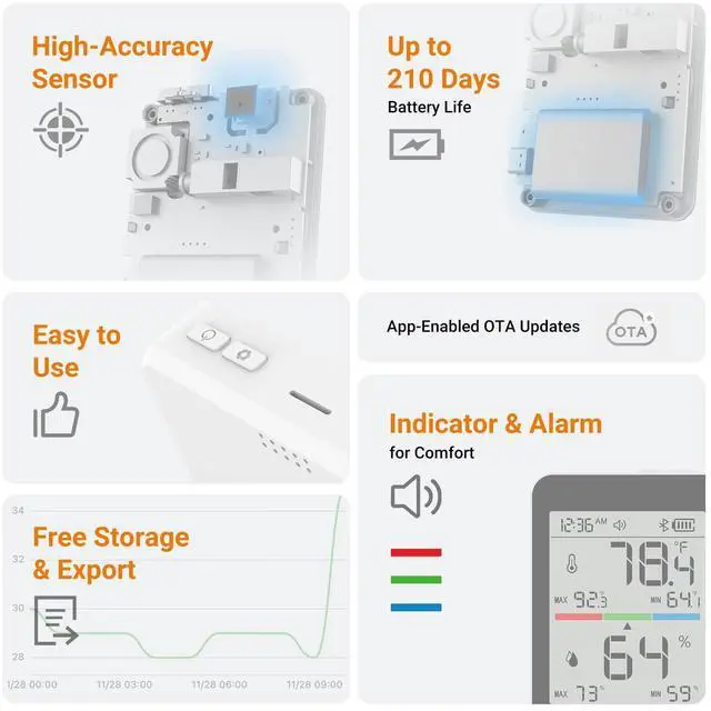 Your Indoor Climate Guardian: Swiss Precision Sensor, Extended Battery Life, App Connectivity, and More.