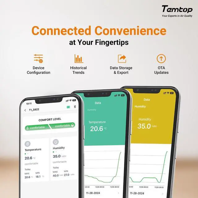 The Temtop T1's soft screen ensures quiet nights and precise monitoring.