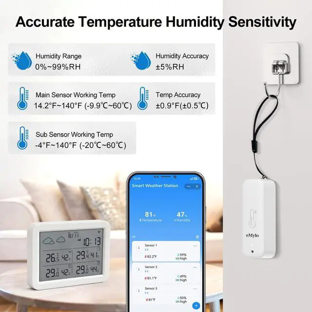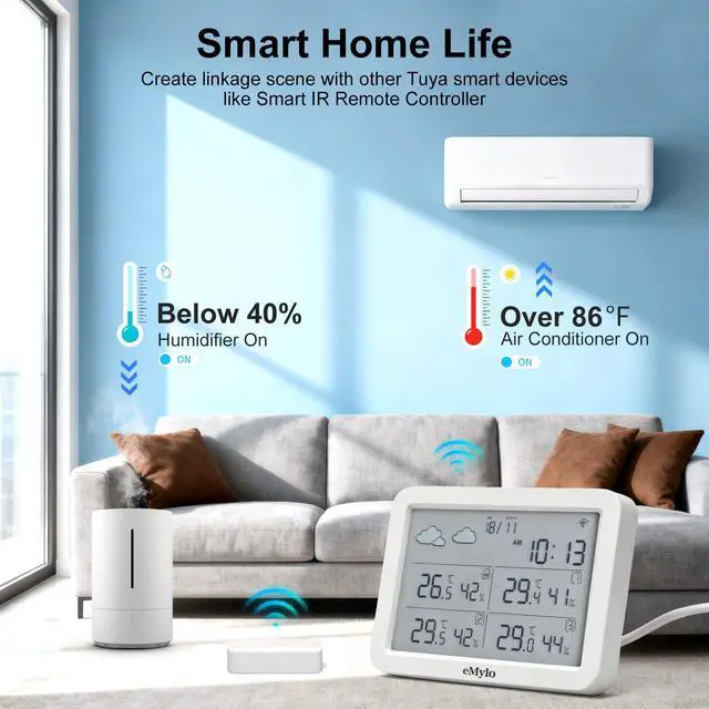 Check temperature & humidity at any time with just your voice when used with eMylo Thermo-Hygrometer