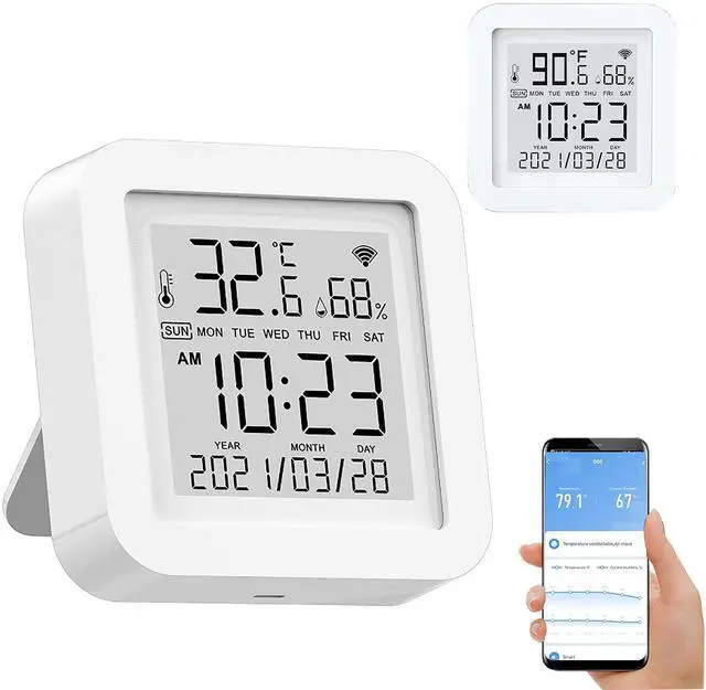 - Wifi Thermometer Hygrometer has a clock function, you would get a clear view of time and date.