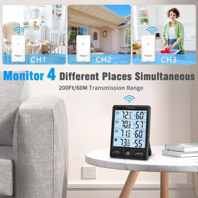 Indoor Outdoor Thermometer Wireless with 3 Sensors