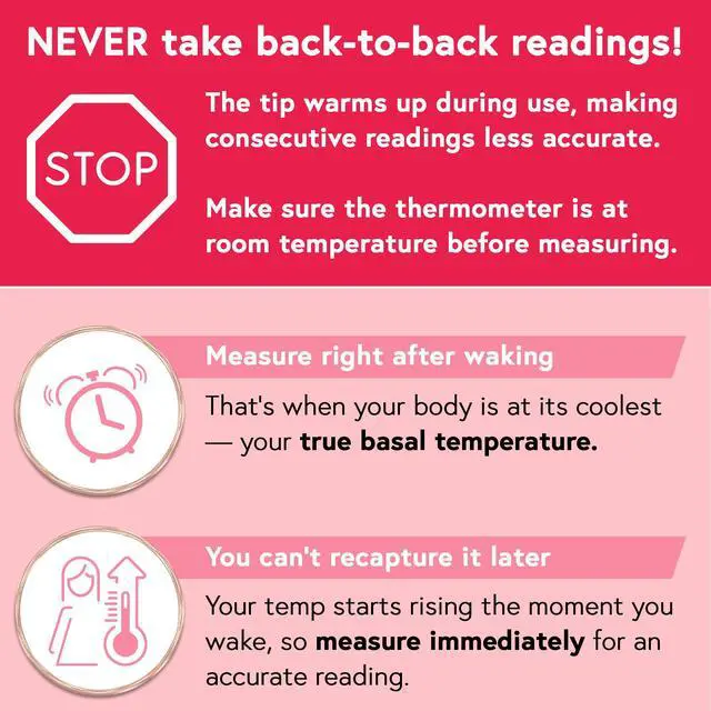 It is best to measure your temperature with the BBT thermometer around the same time every day. The most accurate will come from measuring before getting out of bed, right after waking up. Your body temperature will be at its lowest during this time.