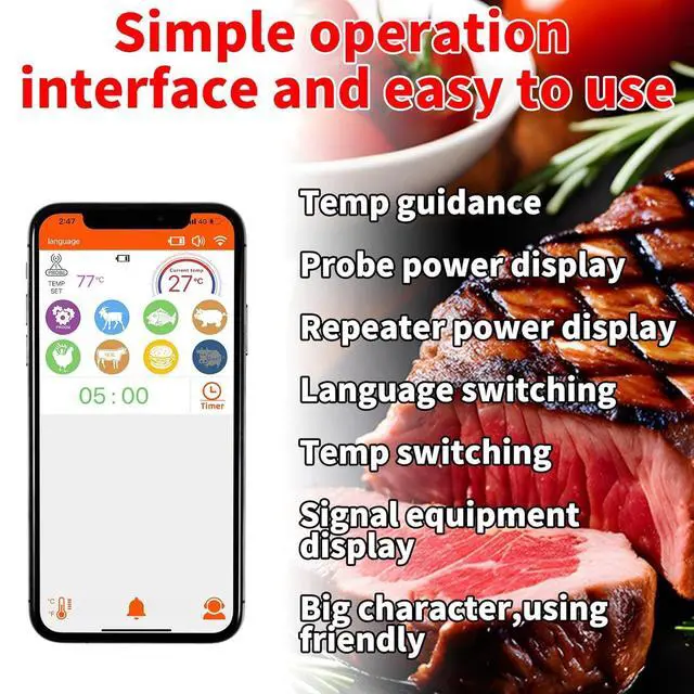 Our wifi meat probe with IP66 waterproof functions after you use it, you can easily clean it and put it back into the host.