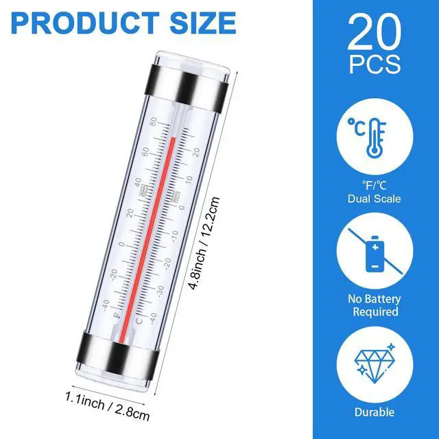 Ensure your food stays fresh and safe with our 20 Pack Refrigerator Fridge Thermometer set. These versatile thermometers are designed to keep track of temperature in refrigerators, freezers, and coolers, making them an essential tool for any kitchen or storage area. With a dual-scale range of -40°F to 80°F (-40°C to 27°C), these thermometers provide accurate readings that help maintain optimal food storage conditions. The large, clear display ensures you can read the temperature at a glance, while flexible mounting options make it easy to place them wherever you need. Perfect for both home and commercial use, this value pack keeps all your temperatures monitored efficiently.