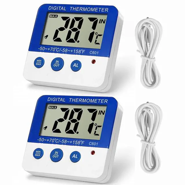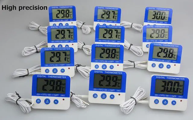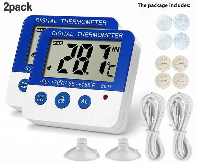 This digital alarm thermometer is essential for freezer, fridge, refrigerator,wine cooler,fish tank,room,etc. Get accurate temperature readings with this miniature digital thermometer which has a simple design, unobtrusive design and a clear and easy to read LCD display. Ideal for use in indoor outdoor, kitchens, restaurants, bars, aquariums, and cafes