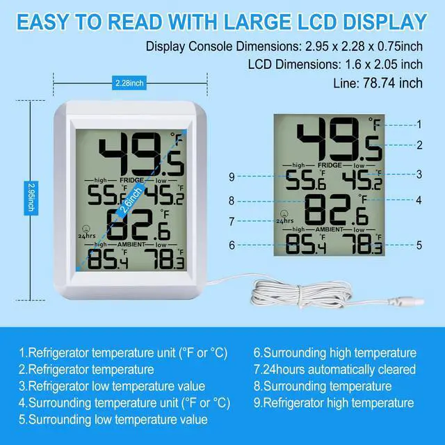 With 6.56ft wired probe is easy to monitor the hot or cold temperatures.