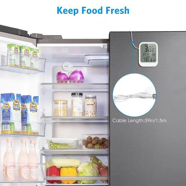 Waterproof probe refrigerator thermomete for fridges, freezers, fish tanks, or greenhouses where accurate, continuous readings matter.