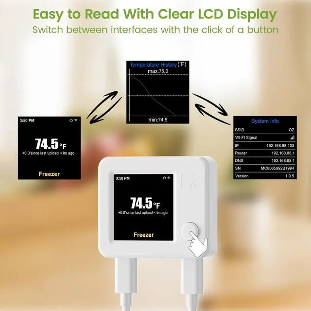 Simple press-and-setup design; quickly configure the WiFi thermometer and switch device interface info
