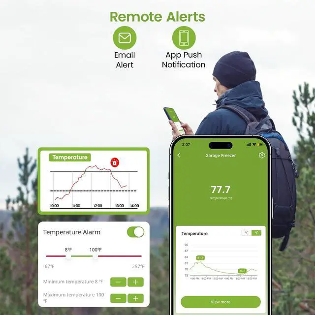 Easily switch between Celsius and Fahrenheit in the MOCREO Smart App; view data in your preferred unit