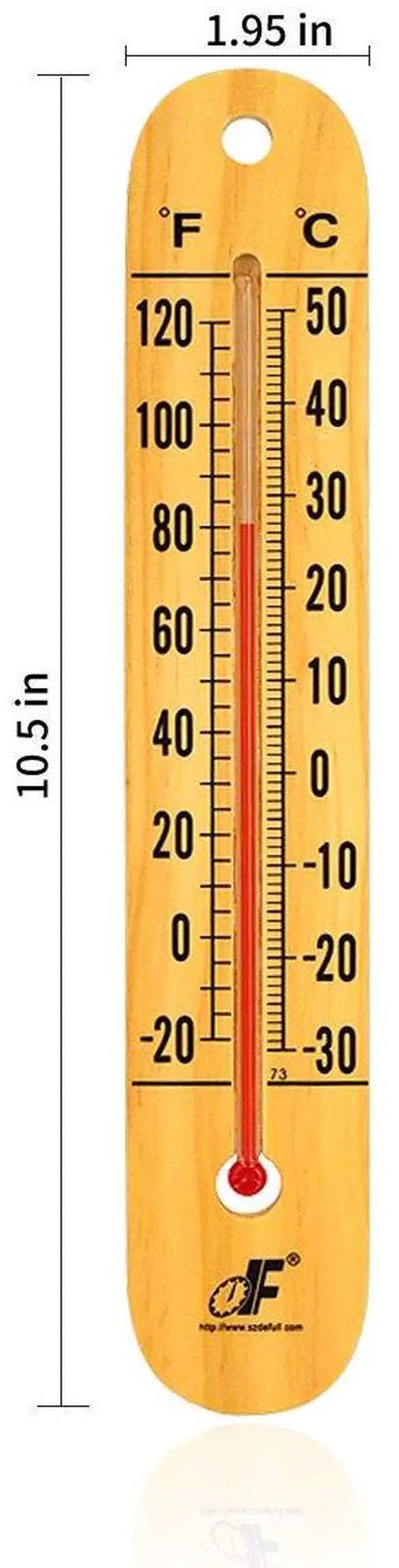 Instantly see the temperature from across the room with our oversized 10.5-inch vertical wood thermometer. Bold, high-contrast numbers ensure effortless reading day or night, indoors or out.