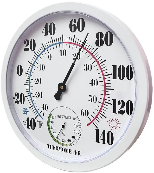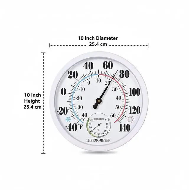 Stay informed about your outdoor conditions with our versatile thermometer and hygrometer. Featuring a large 10-inch dial, this device provides easy-to-read temperature and humidity measurements at a glance. Its waterproof design ensures durability in various weather conditions, making it perfect for patios, gardens, or any outdoor space. The wall-mountable feature allows for convenient placement, while the clear display keeps you updated on environmental changes throughout the day. Whether you're planning outdoor activities or monitoring your garden's climate, this reliable instrument has you covered.