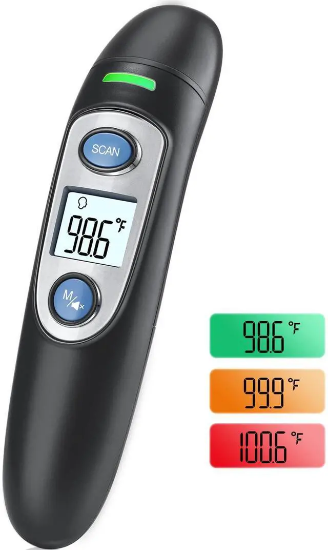 Infrared Thermometer for Adults,Forehead and Ear Thermometer for Fever, Babies, Children, Adults, Indoor and Outdoor Use (Black)