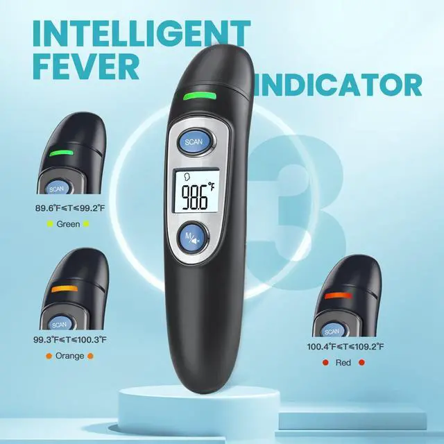 • MULTI-MODE THERMOMETERThe digital thermometer is designed for all ages, adults, infants and elders. It not only supports forehead or ear function, but is able to take room/object temperature. and are easily switchable.