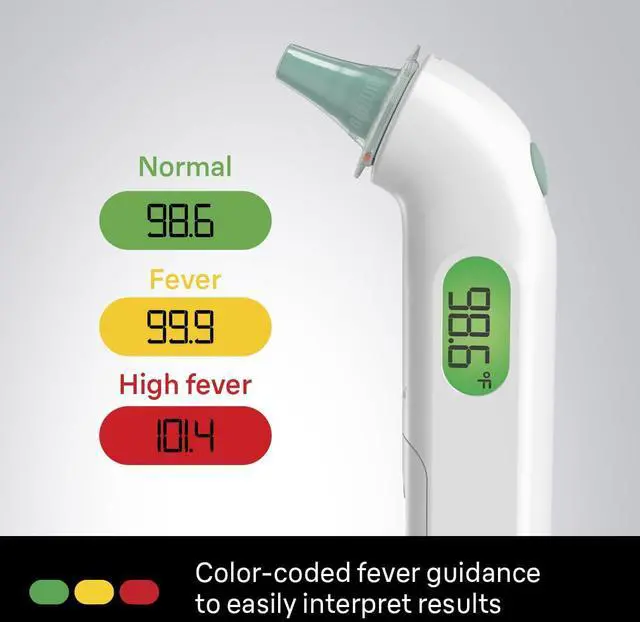 Simple Digital Display & Audio Indicator: Our backlit LCD digital thermometer for adults is color-coded for simple results; a green screen is a normal result (one beep), a yellow screen is a fever (2 beeps), and red screen is a high fever (4 beeps)