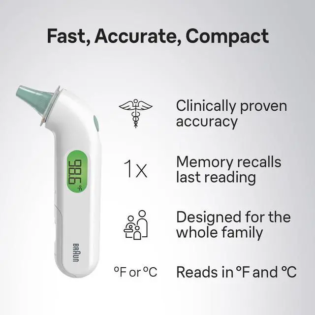 Gentle & great for all ages: The Braun ThermoScan 4 ear thermometer is suitable to use from newborns to adults, serving as a baby thermometer for infants as ear readings remain less invasive and gentler than rectal methods